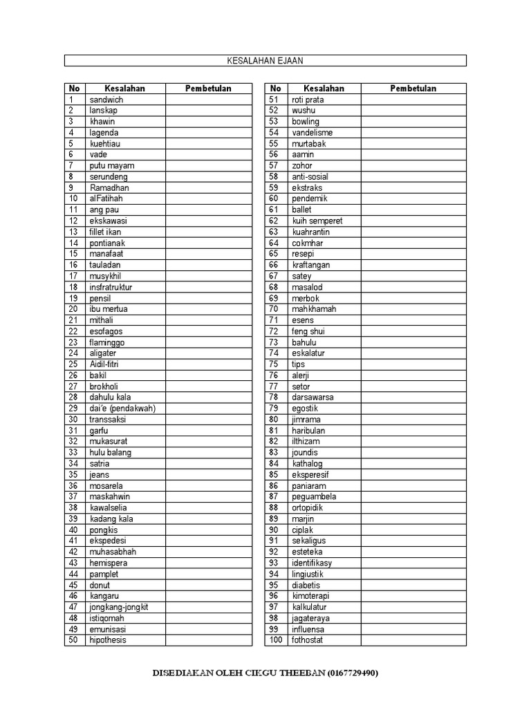 100 Kesalahan Ejaan Dan Jawapan